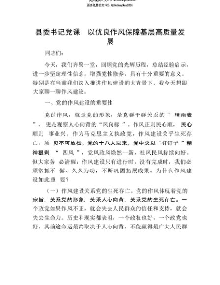 【七哥公文】2025年:【七哥公文】县委书记X课:以优良作风保障基层高质量发展+更多免费公文+VX:QiGeGongWen2024+更多免费公文+VX:QiGeGongWen2024