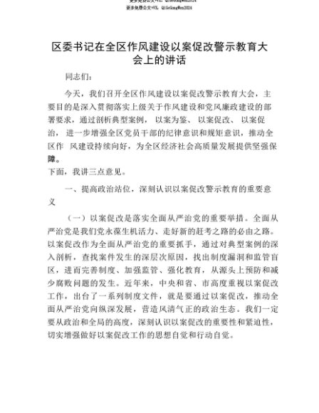 【七哥公文】2025年:【七哥公文】区委书记在全区作风建设以案促改警示教育大会上的讲话+更多免费公文+VX:QiGeGongWen2024+更多免费公文+VX:QiGeGongWen2024