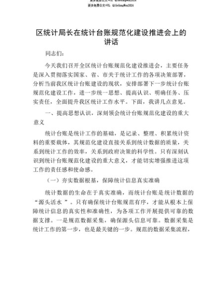 【七哥公文】2025年:【七哥公文】区统计局长在统计台账规范化建设推进会上的讲话+更多免费公文+VX:QiGeGongWen2024+更多免费公文+VX:QiGeGongWen2024