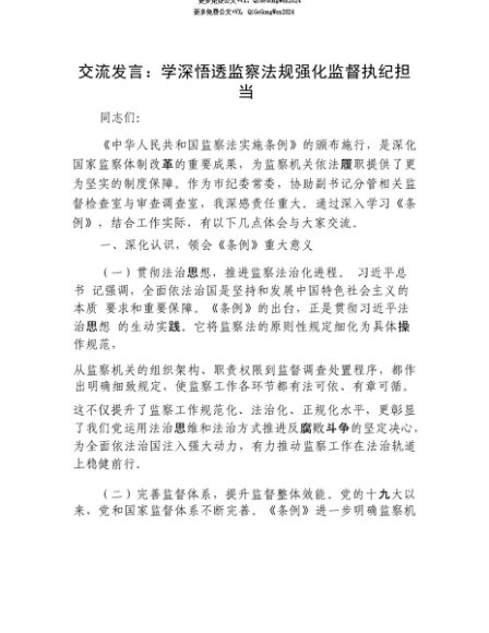 【七哥公文】2025年:【七哥公文】交流发言:学深悟透监察法规 强化监督执纪担当+更多免费公文+VX:QiGeGongWen2024+更多免费公文+VX:QiGeGongWen2024