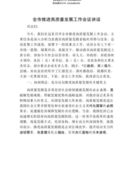 【七哥公文】2025年:【七哥公文】全市推进高质量发展工作会议讲话+更多免费公文+VX:QiGeGongWen2024+更多免费公文+VX:QiGeGongWen2024