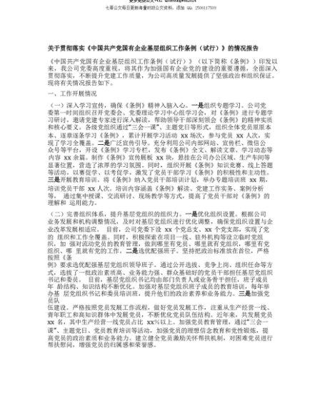 【七哥公文】2025年:【七哥公文】关于贯彻落实《中国共产X国有企业基层组织工作条例(试行)》的情况报告+更多免费公文+VX:QiGeGongWen2024+更多免费公文+VX:QiGeGongWen2024