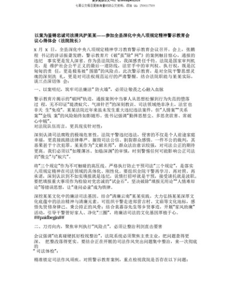 【七哥公文】2025年:【七哥公文】以案为鉴铸忠诚司法清风护某某 ——参加全县深化中央BXGD精神警示教育会议心得体会(法院院长)+更多免费公文+VX:QiGeGongWen2024+更多免费公文+VX:QiGeGongWen2024