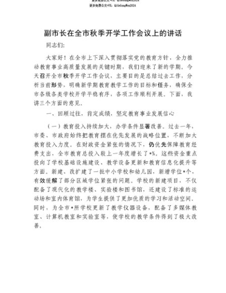 【七哥公文】2025年:【七哥公文】副市长在全市秋季开学工作会议上的讲话+更多免费公文+VX:QiGeGongWen2024+更多免费公文+VX:QiGeGongWen2024