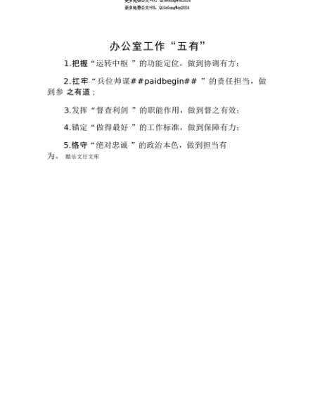 【七哥公文】2025年:【七哥公文】办公室工作“五有”+更多免费公文+VX:QiGeGongWen2024+更多免费公文+VX:QiGeGongWen2024