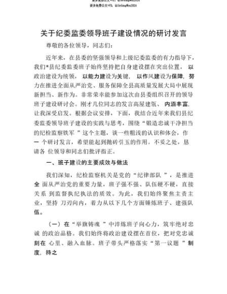 【七哥公文】2025年:【七哥公文】关于纪委监委领导班子建设情况的研讨发言+更多免费公文+VX:QiGeGongWen2024+更多免费公文+VX:QiGeGongWen2024