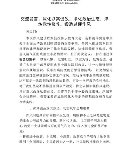 【七哥公文】2025年:【七哥公文】交流发言:深化以案促改,净化ZZ生态,淬炼X性修养,锻造过硬作风+更多免费公文+VX:QiGeGongWen2024+更多免费公文+VX:QiGeGongWen2024