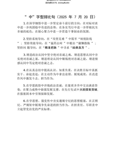 【七哥公文】2025年:【七哥公文】“中”字型排比句(2025年7月20日)+更多免费公文+VX:QiGeGongWen2024+更多免费公文+VX:QiGeGongWen2024