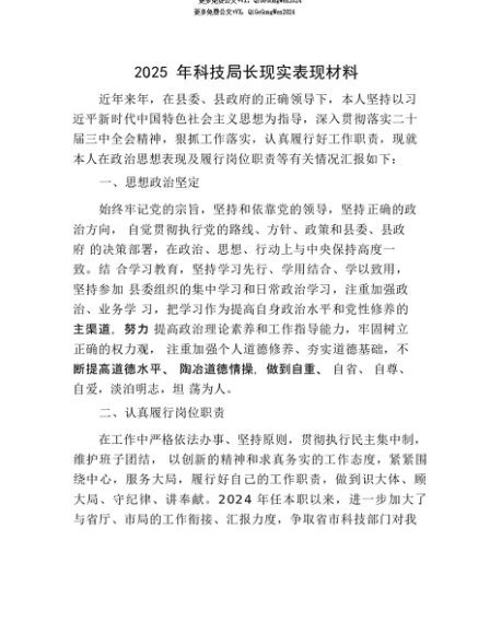 【七哥公文】2025年:【七哥公文】2025年科技局长现实表现材料+更多免费公文+VX:QiGeGongWen2024+更多免费公文+VX:QiGeGongWen2024