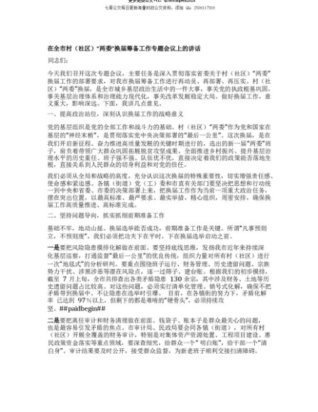 【七哥公文】2025年:【七哥公文】【团队精品】在全市村(社区)“两委”换届筹备工作专题会议上的讲话+更多免费公文+VX:QiGeGongWen2024+更多免费公文+VX:QiGeGongWen2024