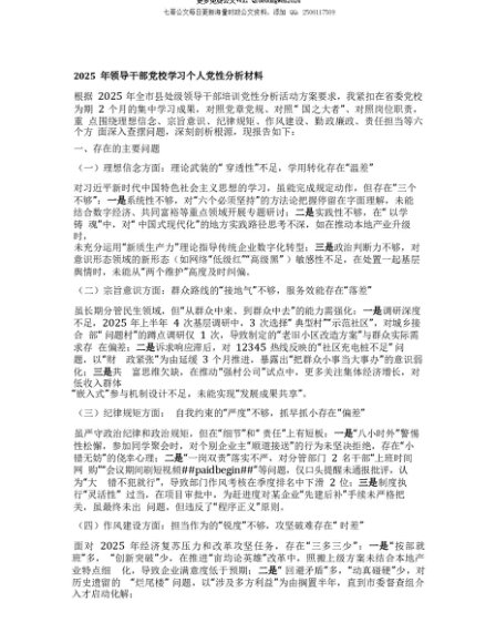 【七哥公文】2025年:【七哥公文】2025年领导干部X校学习个人X性分析材料+更多免费公文+VX:QiGeGongWen2024+更多免费公文+VX:QiGeGongWen2024