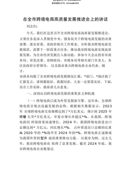 【七哥公文】2025年:【七哥公文】在全市跨境电商高质量发展推进会上的讲话+更多免费公文+VX:QiGeGongWen2024+更多免费公文+VX:QiGeGongWen2024