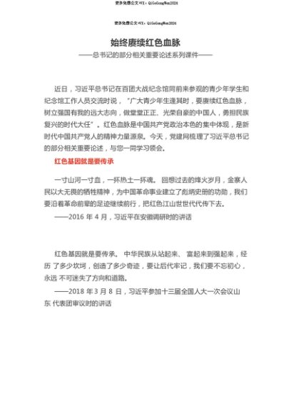 【七哥公文】2025年:【七哥公文】2025始终赓续红色血脉PPT总书记的部分相关重要论述党课(讲稿)+更多免费公文+VX:QiGeGongWen2024+更多免费公文+VX:QiGeGongWen2024
