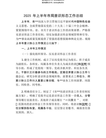 【七哥公文】2025年:【七哥公文】2025年上半年市局意识形态工作总结+更多免费公文+VX:QiGeGongWen2024+更多免费公文+VX:QiGeGongWen2024
