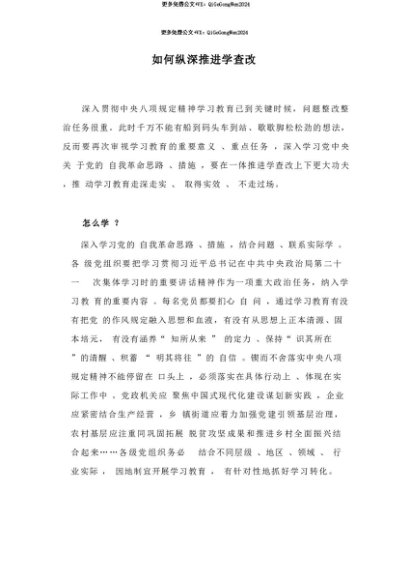 【七哥公文】2025年:【七哥公文】红色精美如何纵深推进学查改PPT2025主题教育党课(讲稿)+更多免费公文+VX:QiGeGongWen2024+更多免费公文+VX:QiGeGongWen2024
