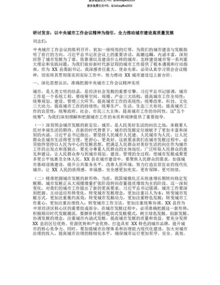 【七哥公文】2025年:【七哥公文】研讨发言:以中央城市工作会议精神为指引,全力推动城市建设高质量发展+更多免费公文+VX:QiGeGongWen2024+更多免费公文+VX:QiGeGongWen2024