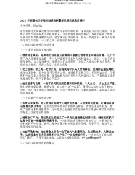【七哥公文】2025年:【七哥公文】2025年副县长关于违纪违法案例警示思想交流发言材料+更多免费公文+VX:QiGeGongWen2024+更多免费公文+VX:QiGeGongWen2024