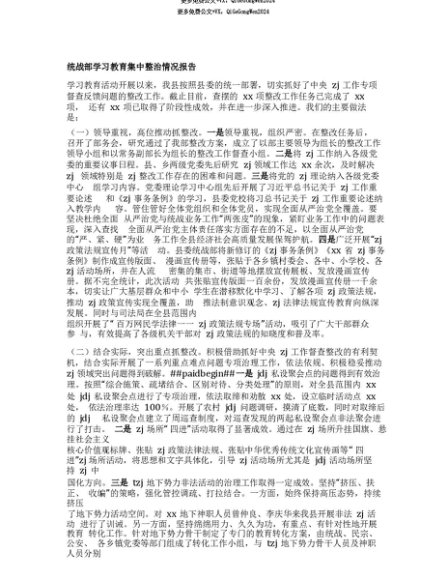 【七哥公文】2025年:【七哥公文】统战部学习教育集中整治情况报告+更多免费公文+VX:QiGeGongWen2024+更多免费公文+VX:QiGeGongWen2024