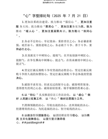 【七哥公文】2025年:【七哥公文】“心”字型排比句(2025年7月21日)+更多免费公文+VX:QiGeGongWen2024+更多免费公文+VX:QiGeGongWen2024
