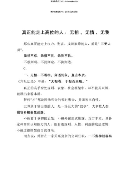 【七哥公文】2025年:【七哥公文】真正能走上高位的人:无相、无情、无我+更多免费公文+VX:QiGeGongWen2024+更多免费公文+VX:QiGeGongWen2024