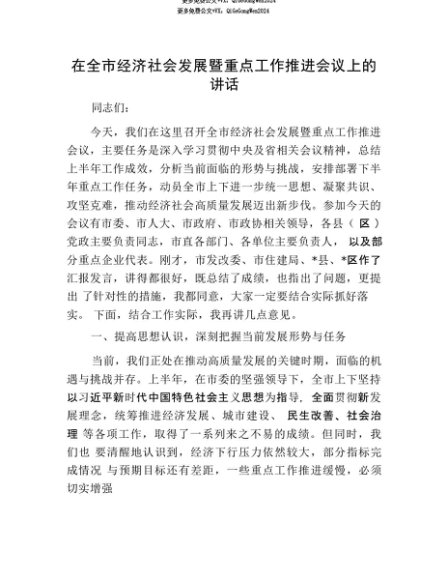 【七哥公文】2025年:【七哥公文】在全市经济社会发展暨重点工作推进会议上的讲话+更多免费公文+VX:QiGeGongWen2024+更多免费公文+VX:QiGeGongWen2024