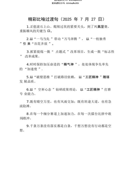 【七哥公文】2025年:【七哥公文】精彩比喻过渡句(2025年7月27日)+更多免费公文+VX:QiGeGongWen2024+更多免费公文+VX:QiGeGongWen2024
