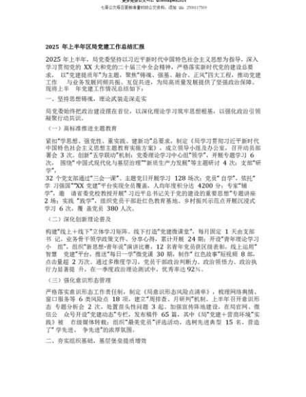 【七哥公文】2025年:【七哥公文】2025年上半年区局X建工作总结汇报+更多免费公文+VX:QiGeGongWen2024+更多免费公文+VX:QiGeGongWen2024