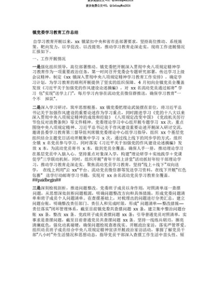 【七哥公文】2025年:【七哥公文】镇X委学习教育工作总结+更多免费公文+VX:QiGeGongWen2024+更多免费公文+VX:QiGeGongWen2024