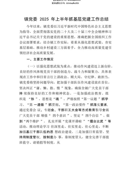 【七哥公文】2025年:【七哥公文】镇X委2025年上半年抓基层X建工作总结+更多免费公文+VX:QiGeGongWen2024+更多免费公文+VX:QiGeGongWen2024