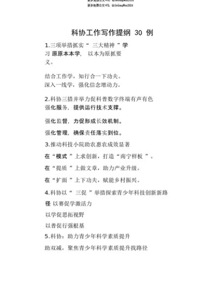 【七哥公文】2025年:【七哥公文】科协工作写作提纲30例+更多免费公文+VX:QiGeGongWen2024+更多免费公文+VX:QiGeGongWen2024