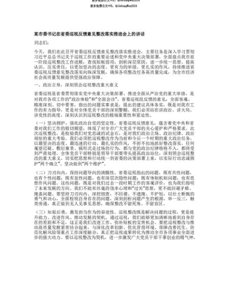 【七哥公文】2025年:【七哥公文】某市委书记在省委巡视反馈意见整改落实推进会上的讲话+更多免费公文+VX:QiGeGongWen2024+更多免费公文+VX:QiGeGongWen2024
