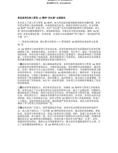 【七哥公文】2025年:【七哥公文】某县直单位深入贯彻xx精神“回头看”自查报告+更多免费公文+VX:QiGeGongWen2024+更多免费公文+VX:QiGeGongWen2024