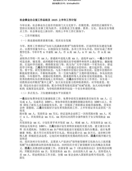 【七哥公文】2025年:【七哥公文】社会事业办公室工作总结及2025上半年工作计划+更多免费公文+VX:QiGeGongWen2024+更多免费公文+VX:QiGeGongWen2024