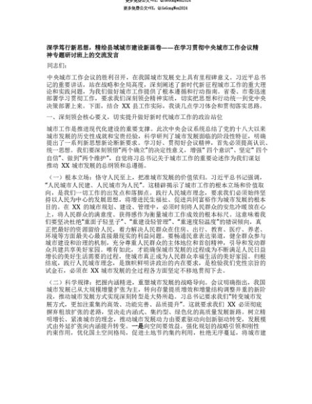 【七哥公文】2025年:【七哥公文】深学笃行新思想,精绘县域城市建设新画卷——在学习贯彻中央城市工作会议精神专题研讨班上的交流发言+更多免费公文+VX:QiGeGongWen2024+更多免费公文+VX:QiGeGongWen2024