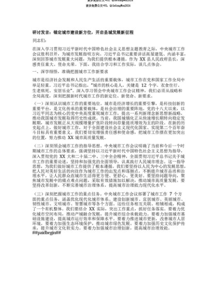 【七哥公文】2025年:【七哥公文】研讨发言:锚定城市建设新方位,开启县城发展新征程+更多免费公文+VX:QiGeGongWen2024+更多免费公文+VX:QiGeGongWen2024