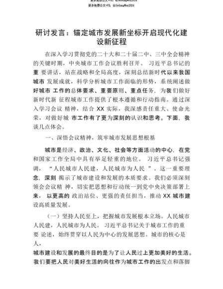 【七哥公文】2025年:【七哥公文】研讨发言:锚定城市发展新坐标 开启现代化建设新征程+更多免费公文+VX:QiGeGongWen2024+更多免费公文+VX:QiGeGongWen2024
