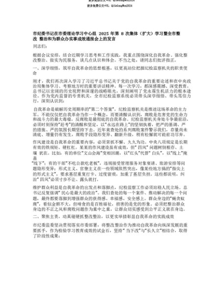 【七哥公文】2025年:【七哥公文】市纪委书记在市委理论学习中心组2025年第8次集体(扩大)学习暨全市整改整治和为群众办实事成效通报会上的发言+更多免费公文+VX:QiGeGongWen2024+更多免费公文+VX:QiGeGongWen2024