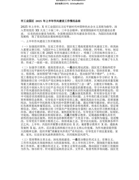 【七哥公文】2025年:【七哥公文】市工业园区2025年上半年作风建设工作情况总结+更多免费公文+VX:QiGeGongWen2024+更多免费公文+VX:QiGeGongWen2024