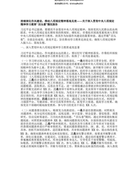 【七哥公文】2025年:【七哥公文】持续深化作风建设,推动BXGD精神落地见效——关于深入贯彻中央BXGD精神学习教育“回头看”情况报告+更多免费公文+VX:QiGeGongWen2024+更多免费公文+VX:QiGeGongWen2024