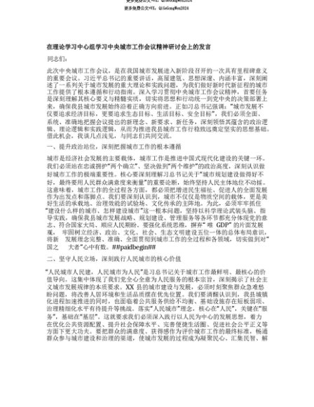 【七哥公文】2025年:【七哥公文】在理论学习中心组学习中央城市工作会议精神研讨会上的发言+更多免费公文+VX:QiGeGongWen2024+更多免费公文+VX:QiGeGongWen2024