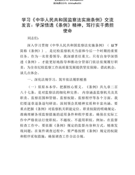 【七哥公文】2025年:【七哥公文】学习《中华人民共和国监察法实施条例》交流发言:学深悟透《条例》精神,笃行实干勇担使命+更多免费公文+VX:QiGeGongWen2024+更多免费公文+VX:QiGeGongWen2024