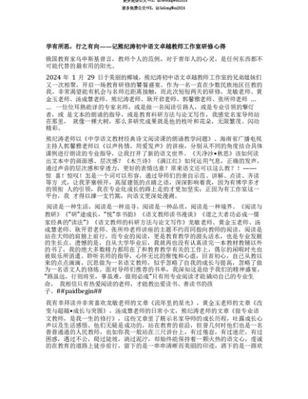 【七哥公文】2025年:【七哥公文】学有所思,行之有向 ——记熊纪涛初中语文卓越教师工作室研修心得+更多免费公文+VX:QiGeGongWen2024+更多免费公文+VX:QiGeGongWen2024
