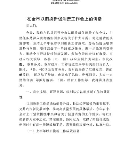 【七哥公文】2025年:【七哥公文】在全市以旧换新促消费工作会上的讲话+更多免费公文+VX:QiGeGongWen2024+更多免费公文+VX:QiGeGongWen2024