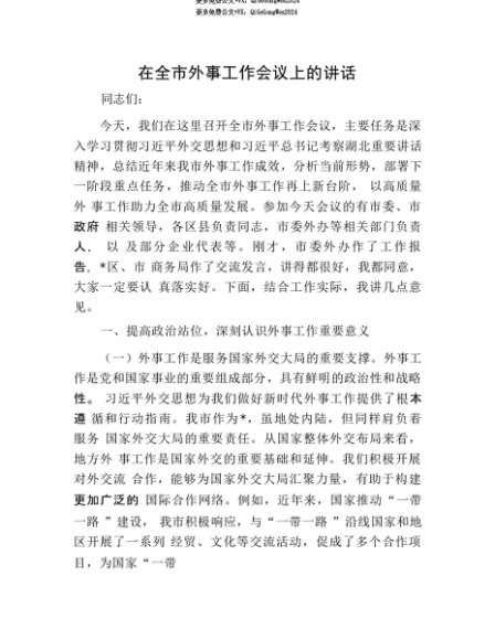 【七哥公文】2025年:【七哥公文】在全市外事工作会议上的讲话+更多免费公文+VX:QiGeGongWen2024+更多免费公文+VX:QiGeGongWen2024