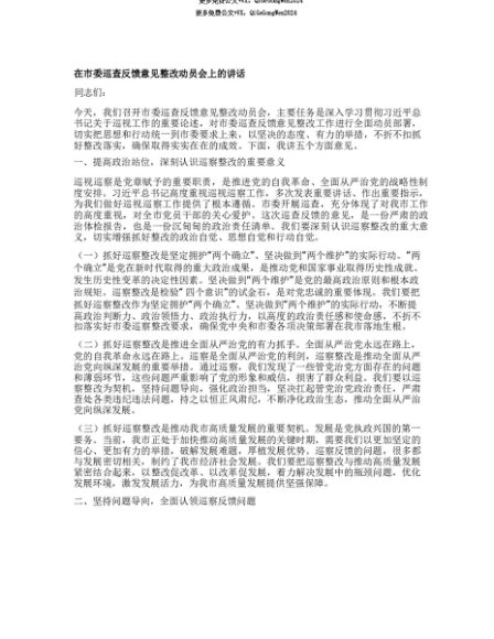 【七哥公文】2025年:【七哥公文】在市委巡查反馈意见整改动员会上的讲话+更多免费公文+VX:QiGeGongWen2024+更多免费公文+VX:QiGeGongWen2024