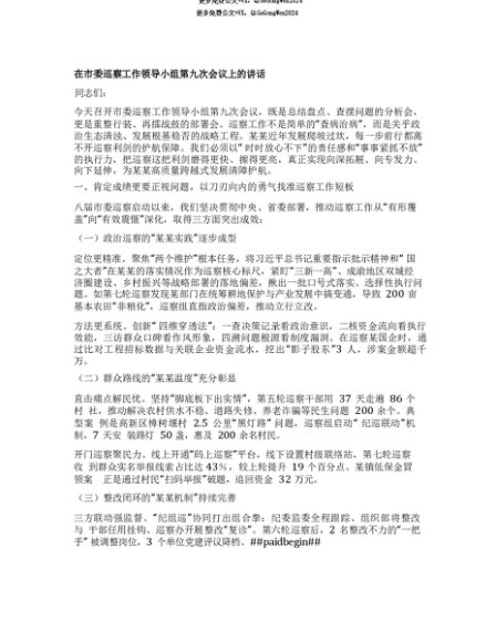 【七哥公文】2025年:【七哥公文】在市委巡察工作领导小组第九次会议上的讲话+更多免费公文+VX:QiGeGongWen2024+更多免费公文+VX:QiGeGongWen2024