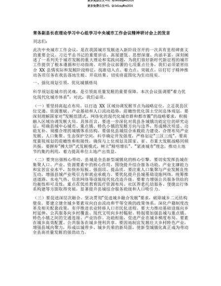 【七哥公文】2025年:【七哥公文】常务副县长在理论学习中心组学习中央城市工作会议精神研讨会上的发言+更多免费公文+VX:QiGeGongWen2024+更多免费公文+VX:QiGeGongWen2024