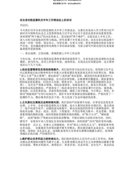 【七哥公文】2025年:【七哥公文】在全省纪检监察机关半年工作推进会上的讲话+更多免费公文+VX:QiGeGongWen2024+更多免费公文+VX:QiGeGongWen2024