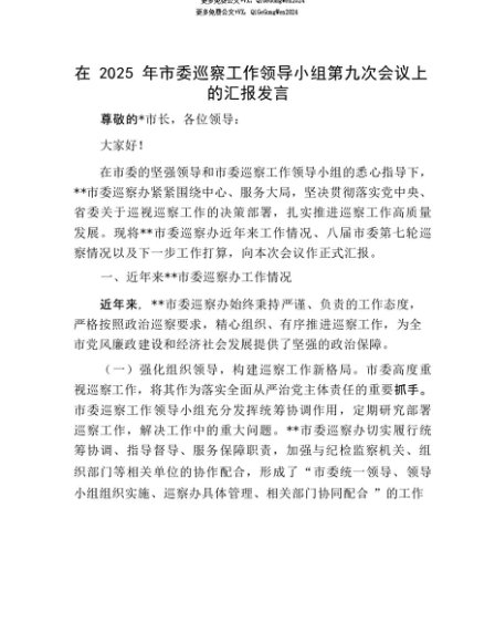 【七哥公文】2025年:【七哥公文】在2025年市委巡察工作领导小组第九次会议上的汇报发言+更多免费公文+VX:QiGeGongWen2024+更多免费公文+VX:QiGeGongWen2024