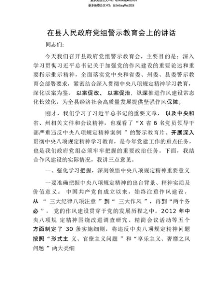 【七哥公文】2025年:【七哥公文】在县人民政府X组警示教育会上的讲话+更多免费公文+VX:QiGeGongWen2024+更多免费公文+VX:QiGeGongWen2024